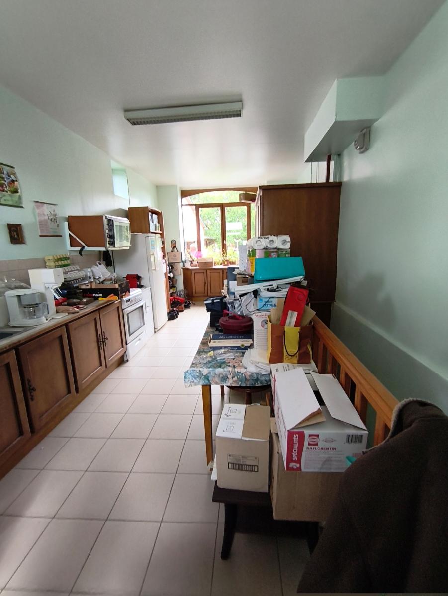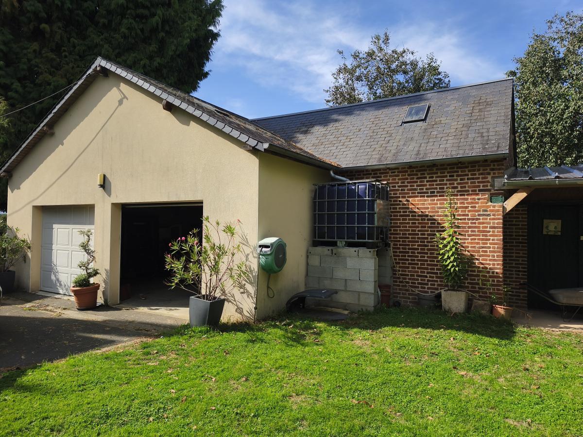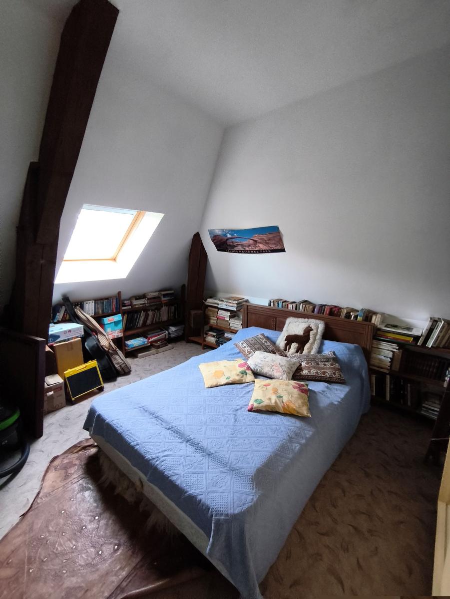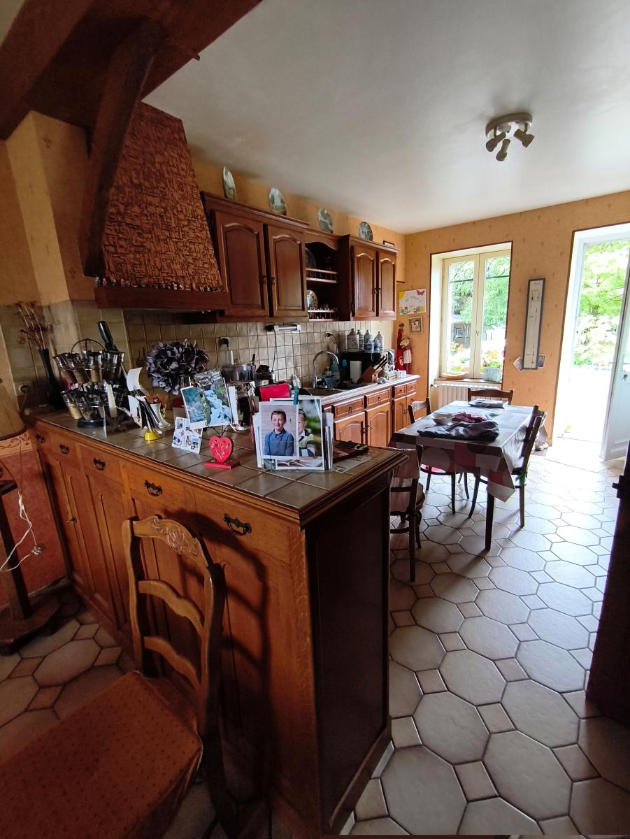 A proximité du bourg, maison de maître de 9 pièces principales, avec garage sur un terrain de 3.500 m². Le rez-de-chaussée est composée d'une entrée, un séjour-salon de 43 m², une cuisine aménagée, une arrière cuisine, une chambre et cabinet de toilette. Au 1er étage : palier desservant 5 chambres, un bureau, une salle de bains et un wc. Au 2ème étage : une pièce et une chambre. Cave en sous-sol. Garage 2 emplacements et appentis en dépendance. L'ensemble sur un terrain de 3.500 m² (cour, verger). Chauffage central fioul. DPE : D.