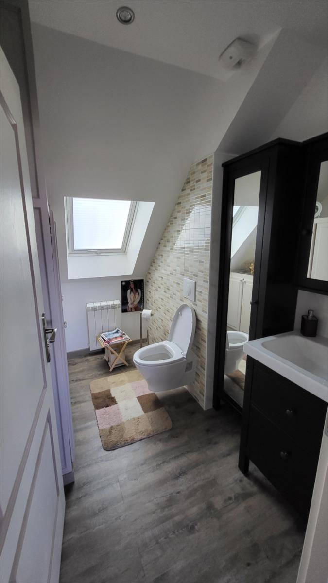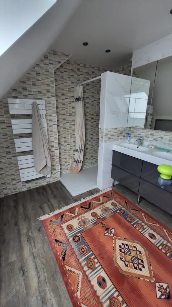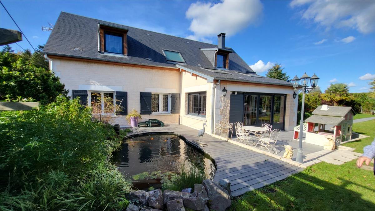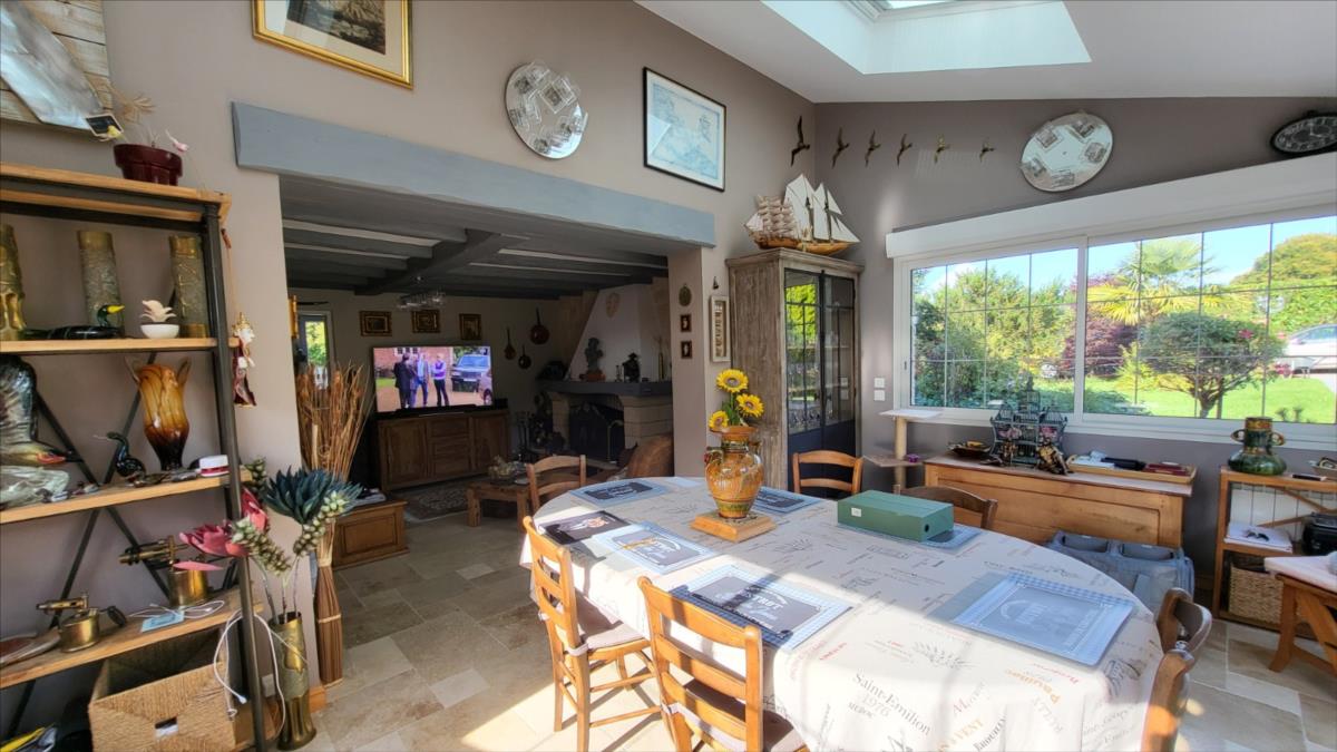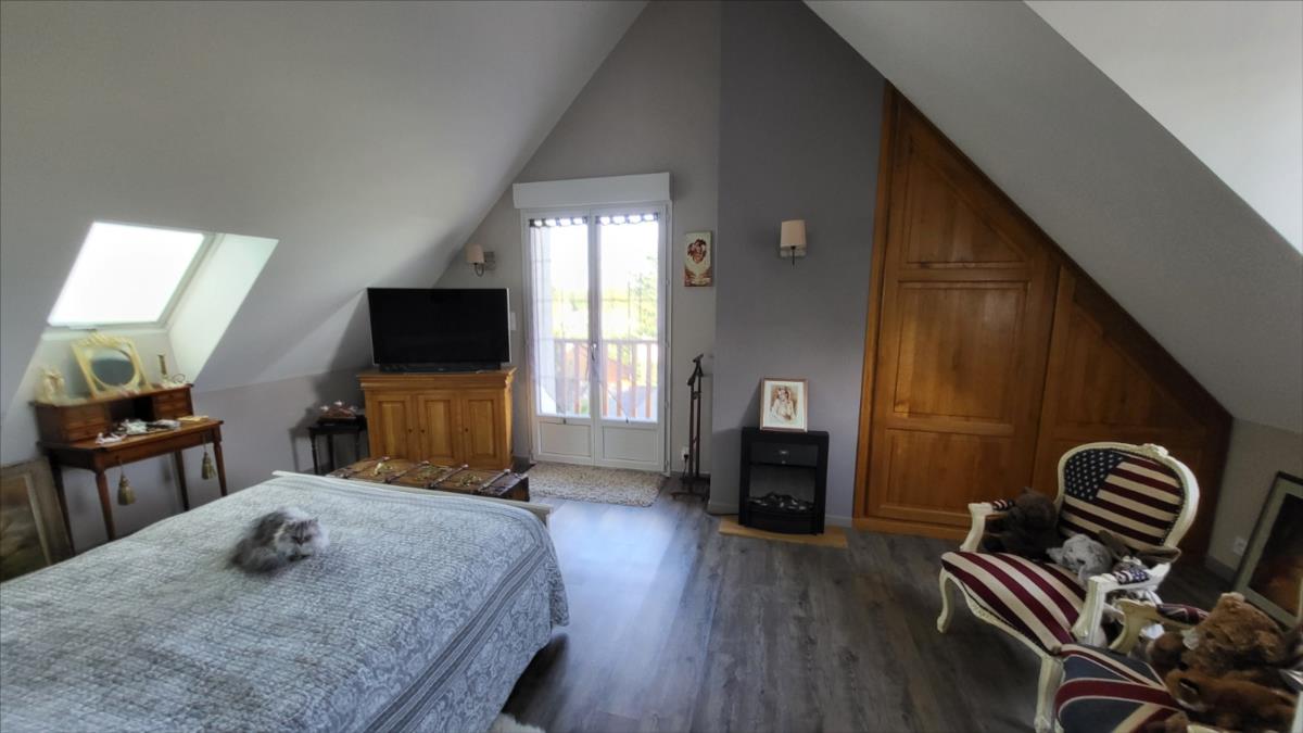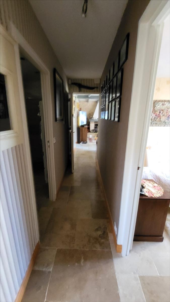 Belle maison rénovée avec goût comprenant : cuisine aménagée et équipée, wc supendus, séjour avec cheminée, couloir desservant : deux chambres et salle de douche à l'italienne et radiateur sèche-serviettes, buanderie avec éléments de rangement et vidange lave-linge; dégagement avec escalier qui mène au 1er étage : grande pièce palière pouvant servir de couchage, une grande chambre avec balcon, salle de bains avec baignoire balnéo et douche, cabinet de toilettes; dalles de travertin au rez-de-chaussée. Chauffage électrique avec commande à distance. Double vitrage avec volets électriques centralisés. Maison isolée de l'extérieur; toiture refaite ainsi que l'intérieur; Garage, et deux abris en bois avec électricité. Beau jardin paysagé avec bassin de 1000 litres. Alarme.