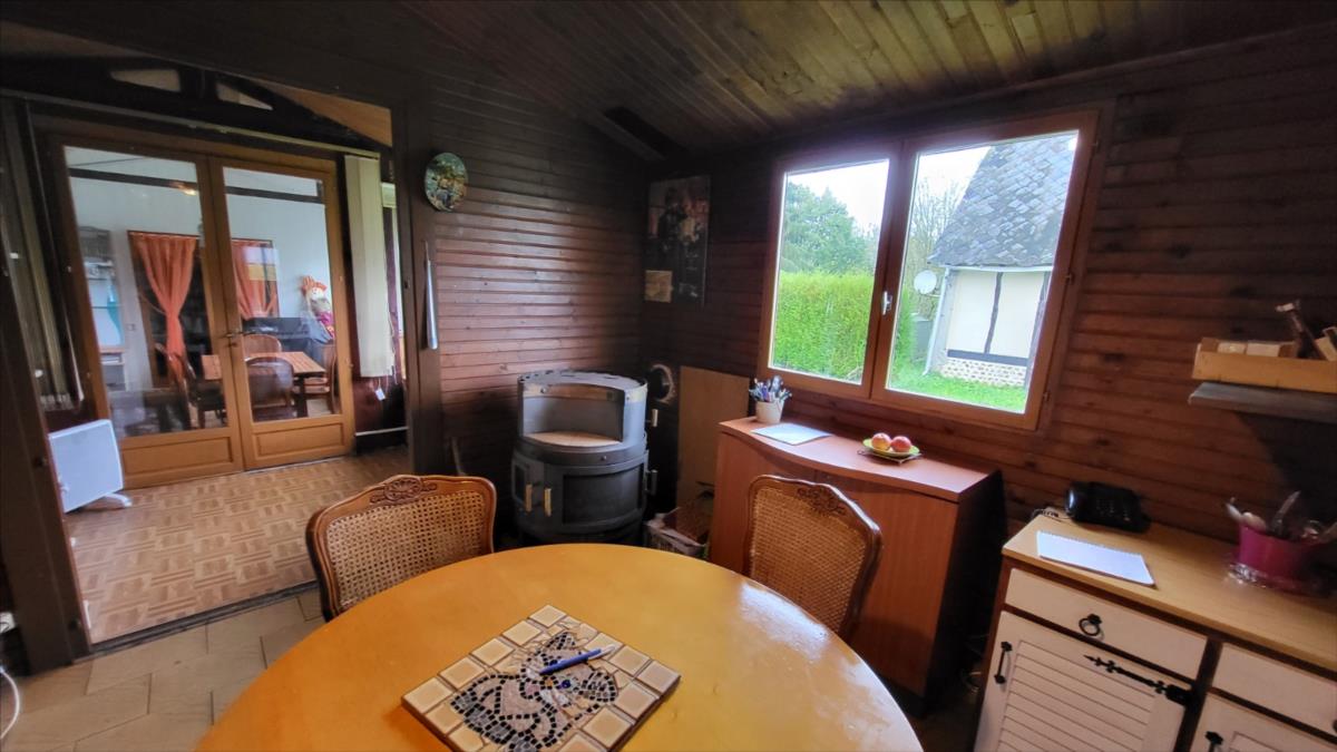 1/ Chalet en bois comprenant séjour avec poêle à bois, salle à manger, une chambre, salle de douche, wc2/ Grange en colombage comprenant cuisine, salle de douche avec wc, bureau3/ Garage en bois,le tout sur un terrain plat de 5086 m², en campagne au calme.  Logement à consommation énergétique excessive Les informations sur les risques auxquels ce bien est exposé sont disponibles sur le site Géorisques : www. georisques. gouv. fr