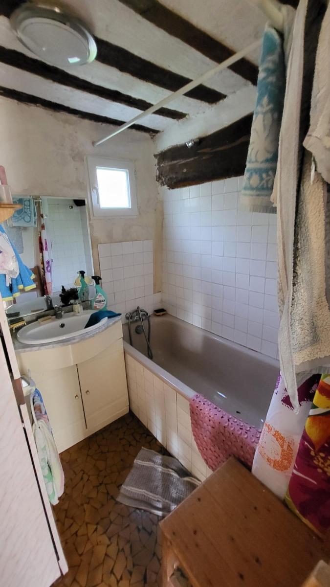 En campagne avec vue dégagée, maison en brique à rénover comprenant entrée avec escalier, cuisine, séjour, salle d'eau, wc; au 1er étage : deux chambres; au 2ème étage : grenier aménageable; dépendance attenante en colombage à usage de cellier et atelier, l'ensemble sur 1175 m².  Les informations sur les risques auxquels ce bien est exposé sont disponibles sur le site Géorisques : www. georisques. gouv. fr