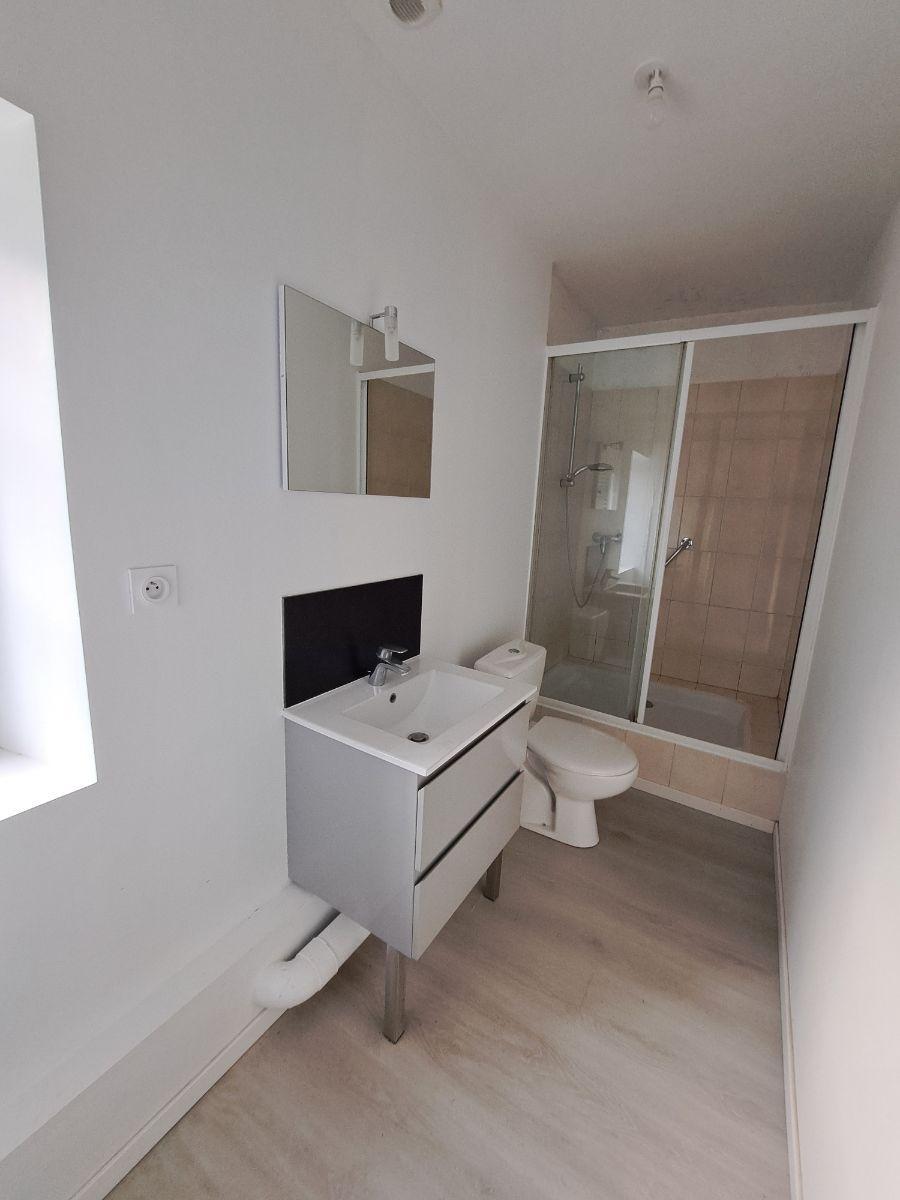 A l'étage: Un couloir desservant deux chambre dont une avec point d'eau, une salle d'eau avec W.C;