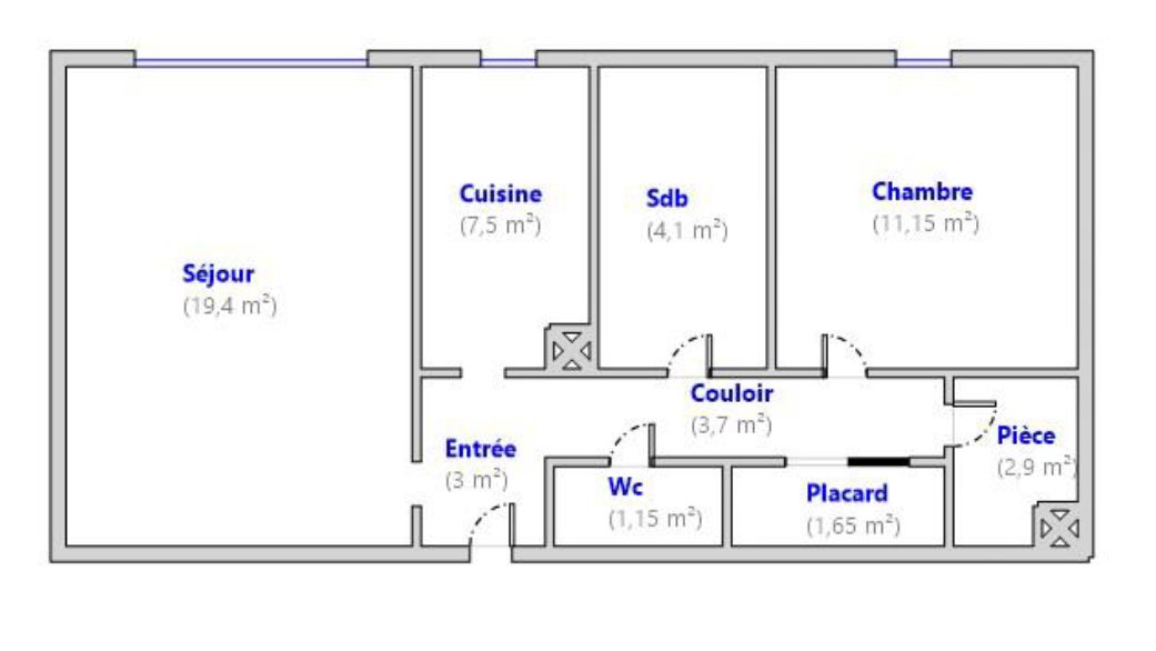 Un APPARTEMENT avec ascenseur situé au quatrième étage du bâtiment comprenant : entrée, dégagement, rangements, salle de bains, wc, cuisine, une chambre, séjour.